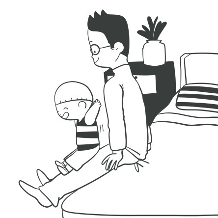 1. 아빠는 아이를 품에 안는 형태로 감싸 안고 서봅니다.