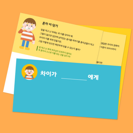 - 차이의 놀이의 모든 콘텐츠는 아이를 돌보고 기르는 모든 양육자 분들을 대상으로 한 콘텐츠 입니다. 아이를 기르는 주 양육자는 아빠, 엄마, 조부모님, 돌봄 선생님 등 각 가정의 상황에 따라 다를 수 있습니다. 다만, 매 콘텐츠마다 각 양육 상황을 고려하여 모두 기재하기에는 어려움이 있어 '엄마'로 표기하여 설명드리는 점이 있습니다. 차이의 놀이의 콘텐츠는 엄마가 주로 양육을 해야 한다는 의미로써 엄마를 주로 언급하여 표기하는 것은 아닌 점 꼭 참고해 주시기 바랍니다.