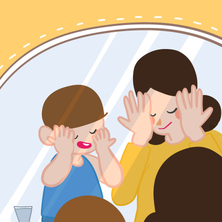 온 가족이 모여 거울을 보며 표정 놀이를 해보세요. 아이가 여러 감정에 어울리는 표정을 지으며 공감능력과 사회성이 발달합니다.