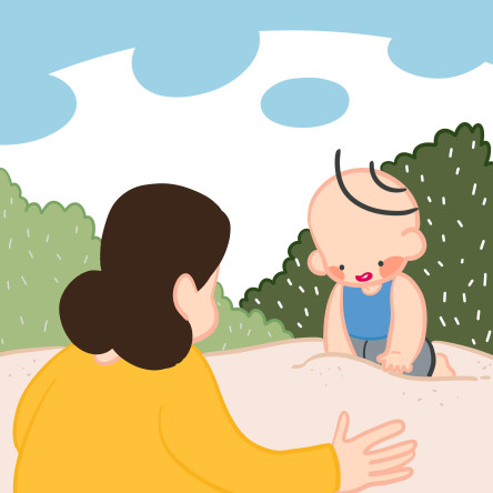 2. 아이가 모래통에 흥미를 보이면 자유롭게 탐색할 수 있도록 합니다.