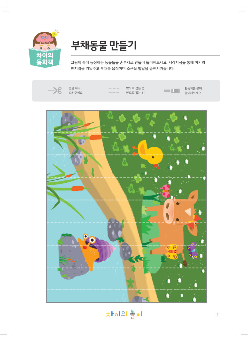 동물 부채 만들기 - 차이의 동화책 두뇌발달편 [작은 동물원]