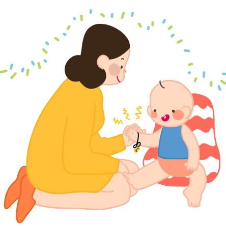 ![]() | (아기의 손목에 딸랑이를 채우며) 딸랑딸랑 재미있는 소리가 나네. |