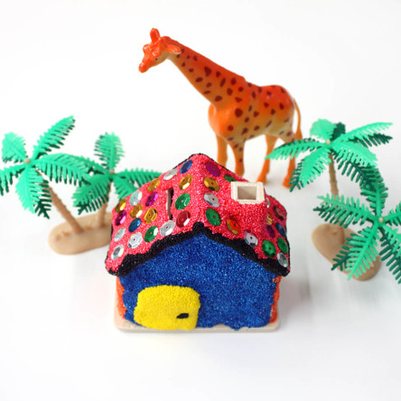 그릇 2개, 가위, 가는 빨대, 굵은 빨대, 색깔 종이컵 패키지에 포함된 재료