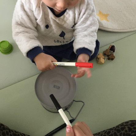 ![]() | (아기가 바구니 안에 놀잇감을 넣으면) 파란 공이 통통 소리를 내며 바구니 속으로 숨어버렸네. |