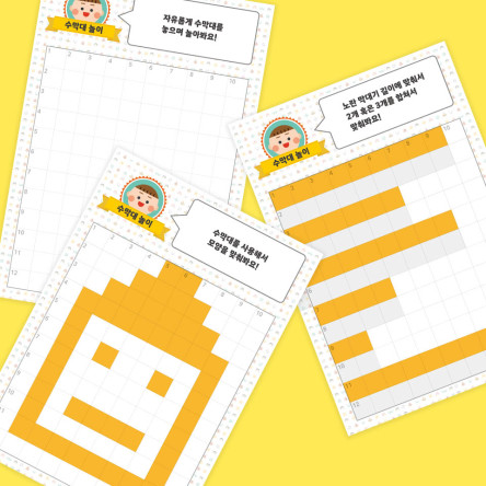 - 도화지 위에 펜토미노 조각을 이용하여 자유롭게 모양을 구성합니다.동물, 식물, 사물 등 아이가 좋아하는 모양을 구성합니다.