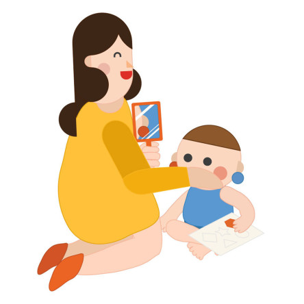 - 스티커를 가린 엄마의 손바닥 사이로 아기가 스티커를 관찰할 수 있도록 합니다.