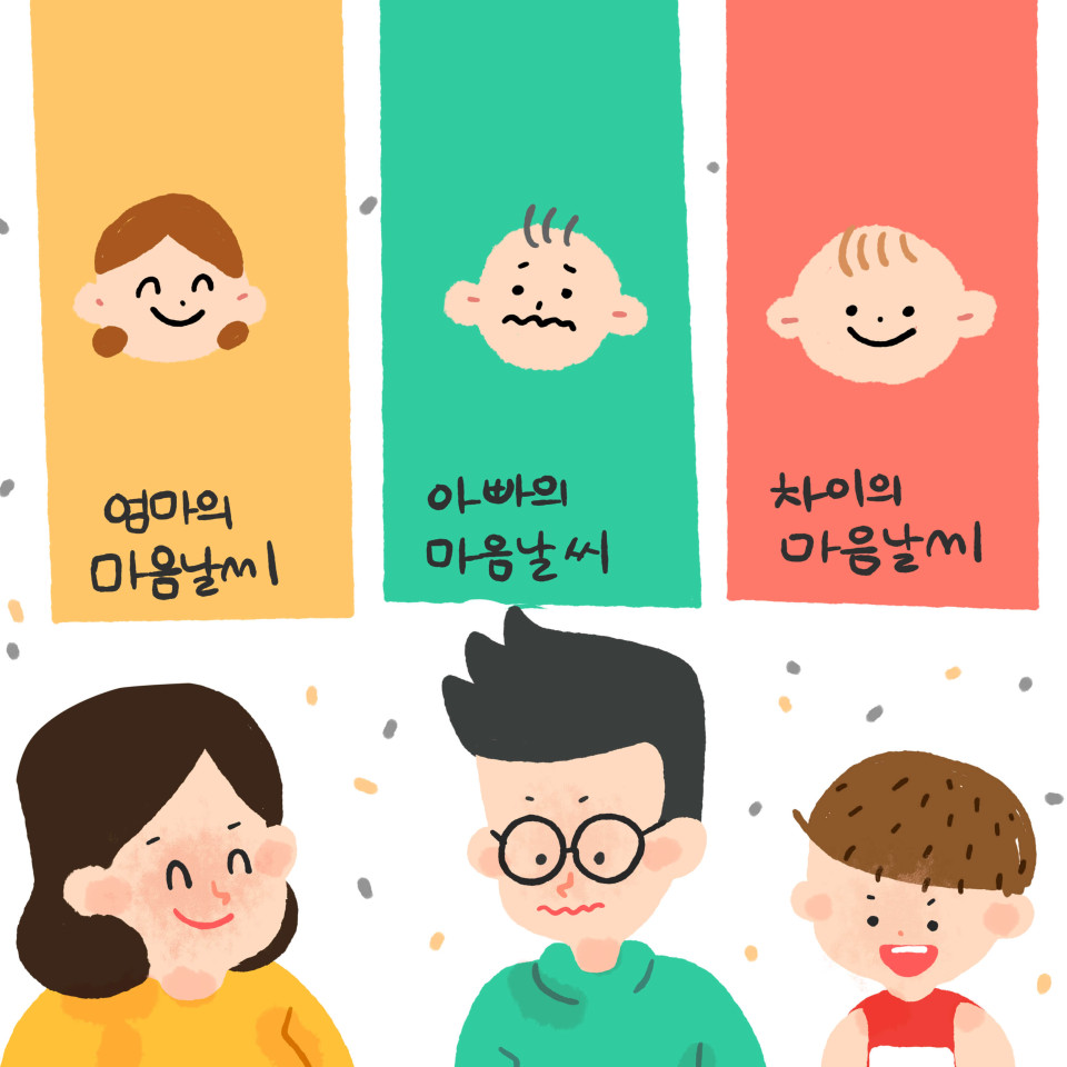 마음 날씨 표정판에 자신의 감정을 나타내는 표정을 붙여보며 자신의 감정에 대해 인지하고 적절하게 표현하는 태도를 기릅니다.