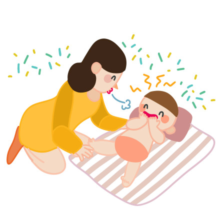 1. 아기가 기저귀에 응가를 하면 놀이를 시작해주세요.