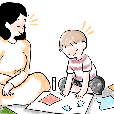 - 아이에게 색깔 종이 조각을 보여주고 흥미를 유발합니다.