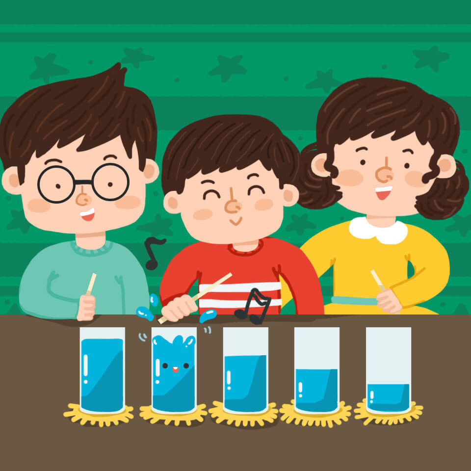 유리컵과 젓가락을 사용하여 실로폰을 만들어 놀이해보세요.