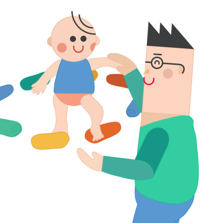 1. 아빠가 아이의 다리와 배를 잡아 줍니다.