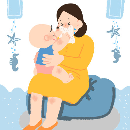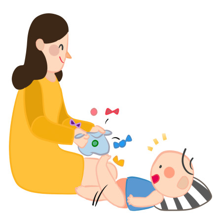 ![]() | (아기를 무릎에 앉히고 그림책을 보여주며) 이게 무슨 그림책일까? |