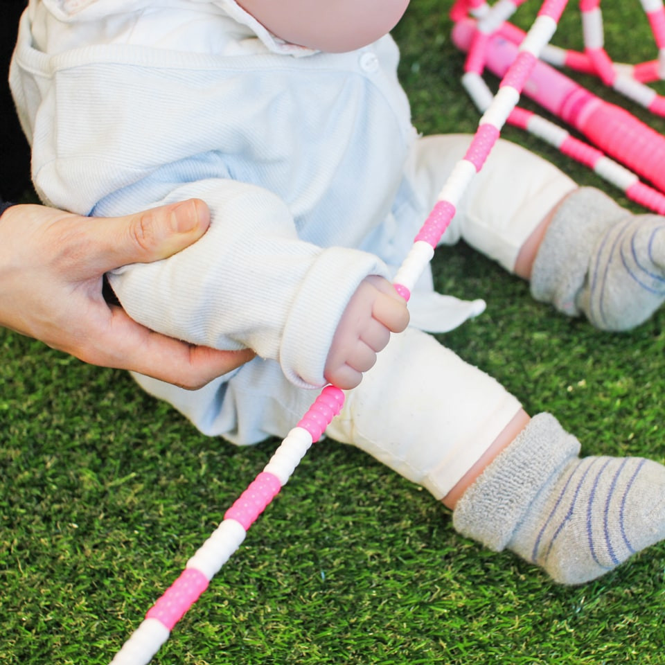 - 줄넘기를 적당한 높이로 들어주고, 다양한 신체 부위로 칠 수 있게 격려합니다.적극적으로 움직이는 아이의 행동을 칭찬해주세요.
