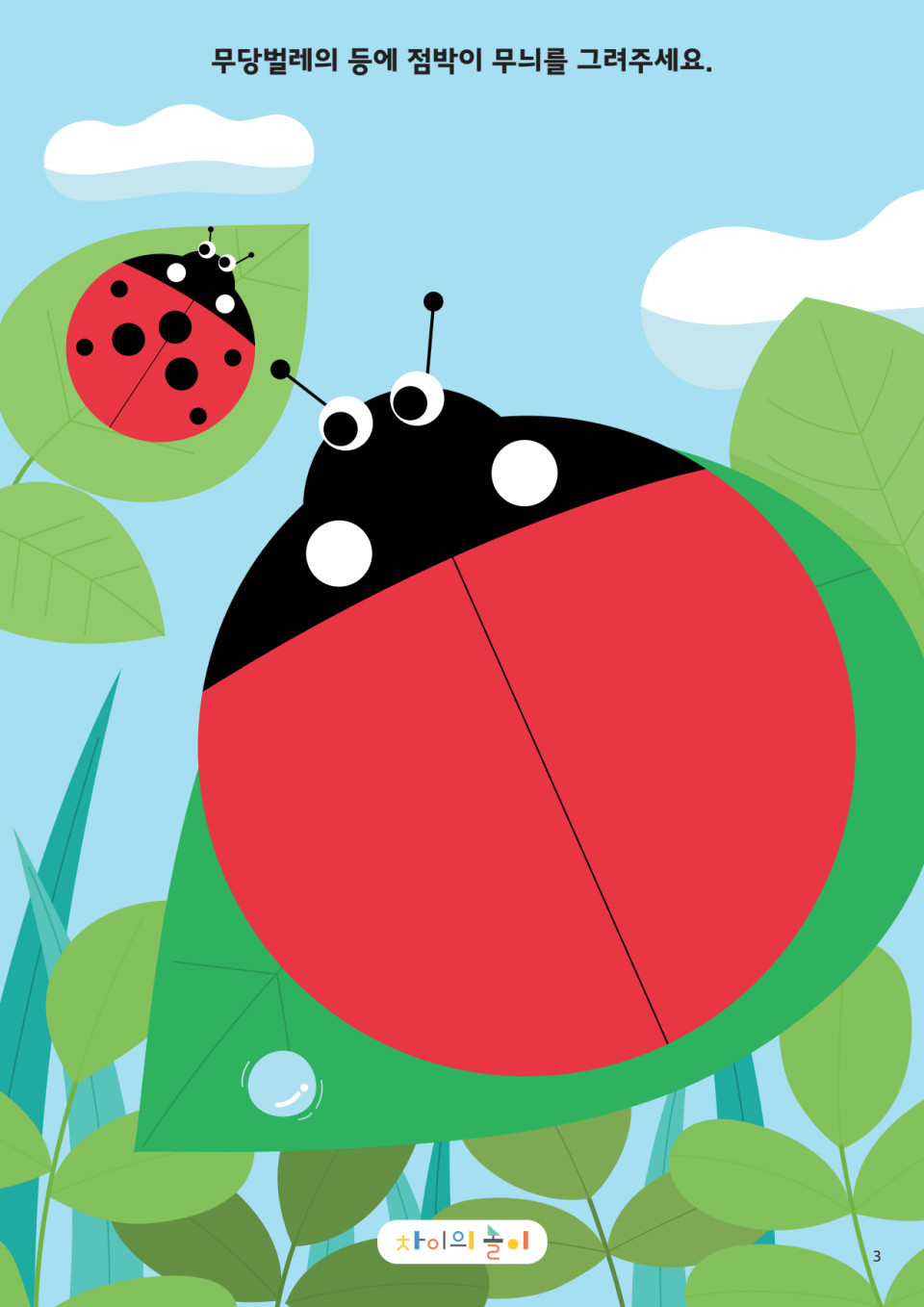 점박이 무늬를 채우며 무당벌레의 특징을 이해하고, 소근육 능력이 발달합니다.