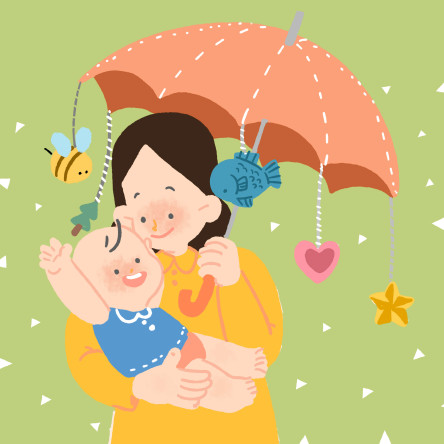 엄마의 품에 안겨 모빌을 사이를 통과하며 긍정적인 애착을 형성하고, 모빌을 감각적으로 탐색하며 인지 발달을 도모합니다.
