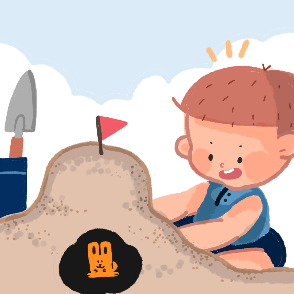 촉촉한 모래 속 숨겨진 장난감을 찾기 위해 탐색하며 인지가 발달하고, 모래를 걷어내고 뭉치는 과정 속 손가락 사용을 도모하여 손 빨기에 대한 흥미를 떨어뜨려줍니다.