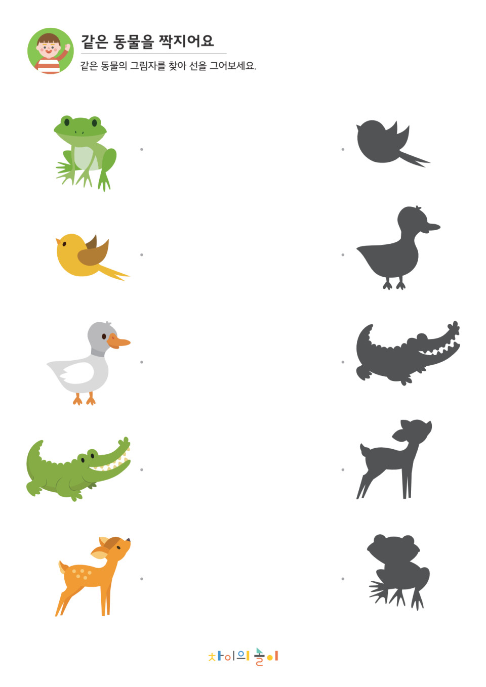 ![]() | 우리 차이가 같은 동물을 찾아 선을 연결해줄까? |