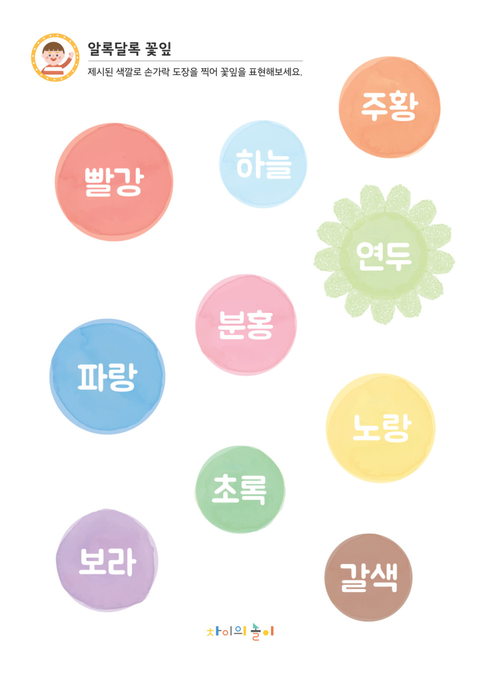 제시된 색깔로 손가락 도장을 찍어 꽃잎을 표현해보세요.