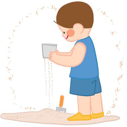 색모래의 질감을 감각적으로 탐색하고 끼적이기를 하며 소근육 조절력을 길러줍니다.