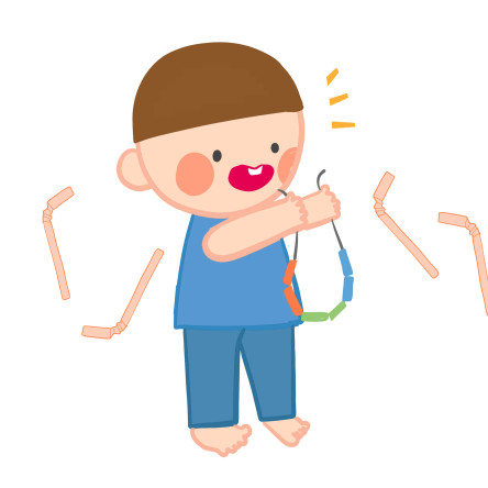 ![]() | (아이에게 목걸이 만들기 재료를 보여주며) 차이야~ 여기 여러 가지 모양의 조각들이 있네 |