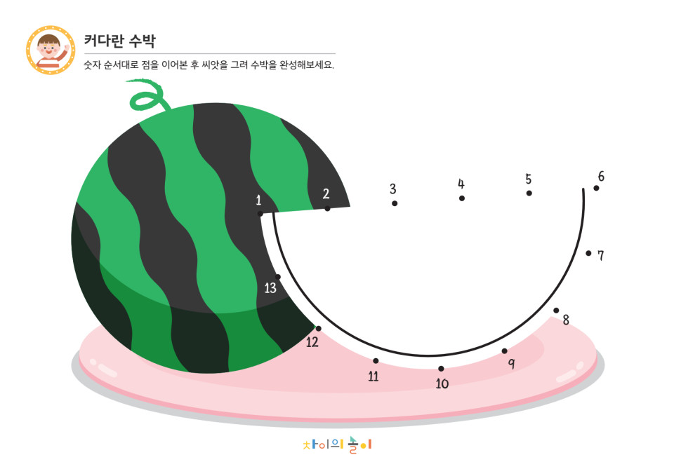 숫자 순서대로 점을 이어 수박을 완성해보세요.