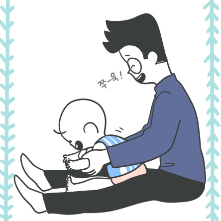 ![]() | (Angkat kedua kaki bayi) Mana nih kaki Chai yang imut-imut? Aha! Di sini rupanya! |