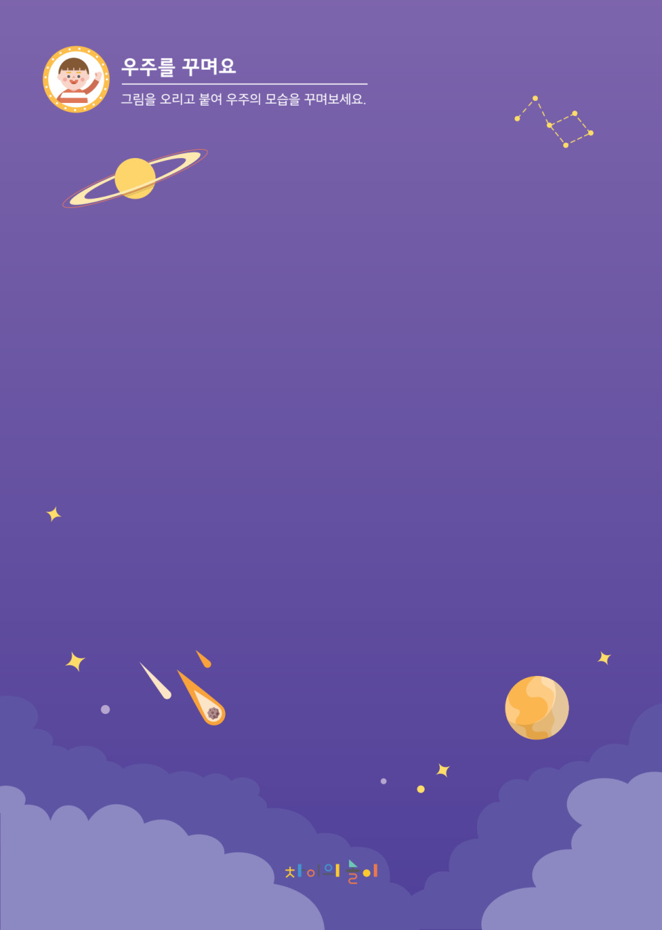 다양한 그림을 오리고 붙여 우주의 모습을 꾸며보세요.