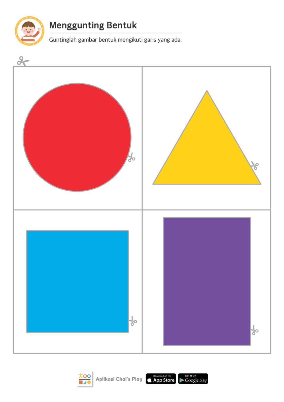 Aktivitas menggunting dapat membantu perkembangan koordinasi mata dan tangan anak dan membantu anak memahami konsep bentuk.