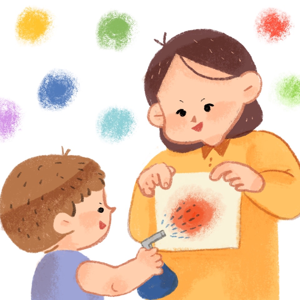 펜을 쥐고 마음껏 끼적이며 손과 팔의 근력을 길러 운필력의 기초를 다지고, 사인펜의 번지는 효과를 경험하며 원인-결과를 사고하는 능력이 발달합니다.