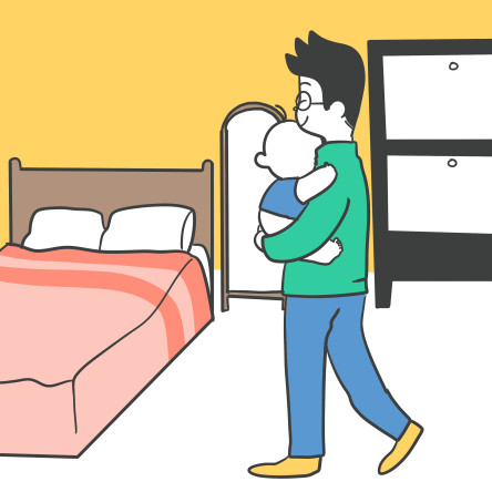 2. 나무가 있는 곳으로 아기를 데려갑니다.