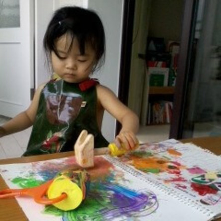 ![]() | (아이가 터트리면) 이번에는 빨간색 물감이 나타났구나 |