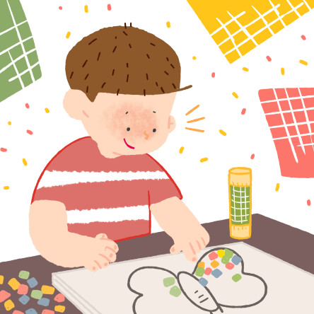 반짝이는 색종이를 알맞게 찢어 붙이며 미적 표현력을 기르고, 소근육 조작능력이 발달합니다.