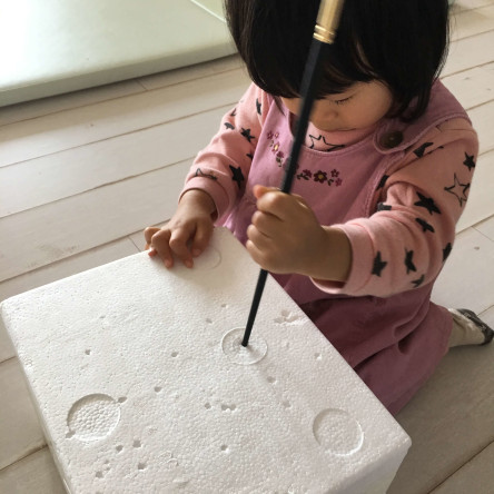 - 컵 안에 담긴 수정토 색깔을 관찰하고 질감을 탐색한 후 놀이를 반복합니다.