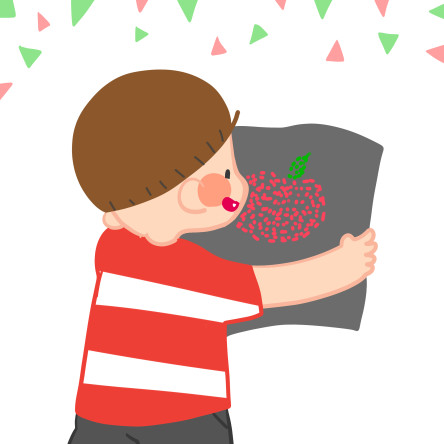 ![]() | (점보 붓으로 색자갈을 부드럽게 쓸며) 쓱싹~ 색자갈이 치워지며 동물 친구가 나타났구나. |