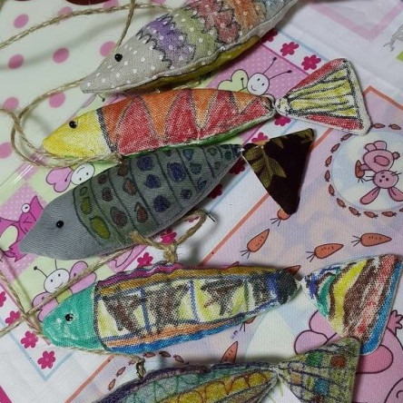 - 접착 눈알 (1.2cm)와 접착 눈알 (0.9cm)를 물고기 위에 붙여줍니다.