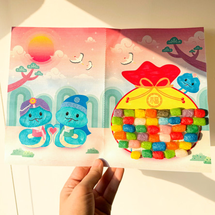 청뱀 새해 복주머니 카드를 꾸며요
