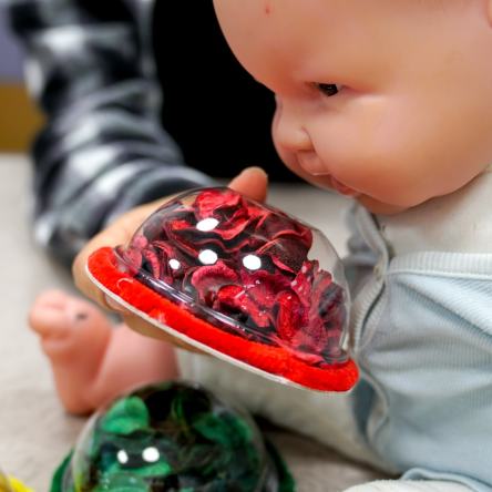 엄마 손가락을 따라 모양과 색을 관찰해요