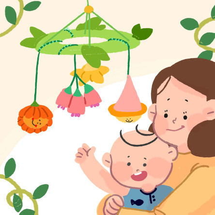 엄마품에 안겨 모빌을 봐요