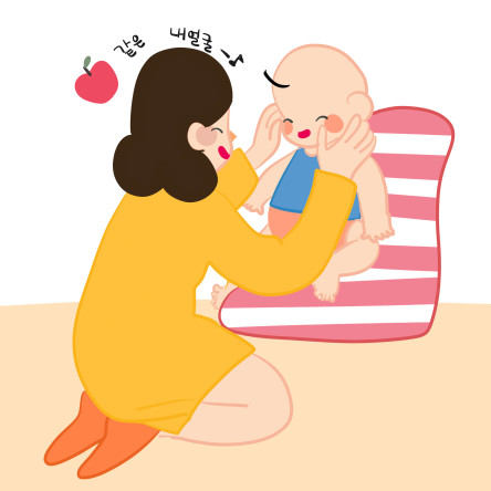 아기가 엄마 말을 아직 잘 이해하지 못하는 것처럼 보이지만, 아기는 열심히 집중해서 듣고 있답니다! 아기 수준에 맞추어 이런 대화를 나누어보세요~ 아기의 언어 발달에 소중한 자극을 줄 수 있답니다.